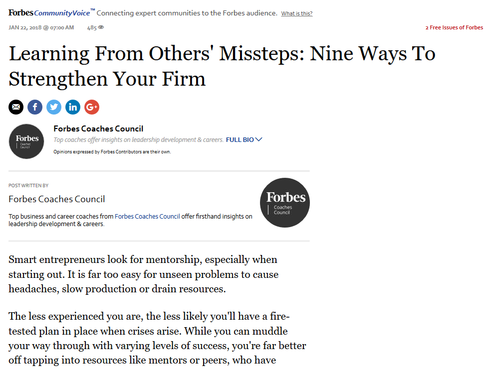 Cari Coats Provides Advice Learning From Experience in Forbes Article June 18, 2018 Read the full article covered in Forbes. Click for PDF format. Posted in In The News Accendo Leader