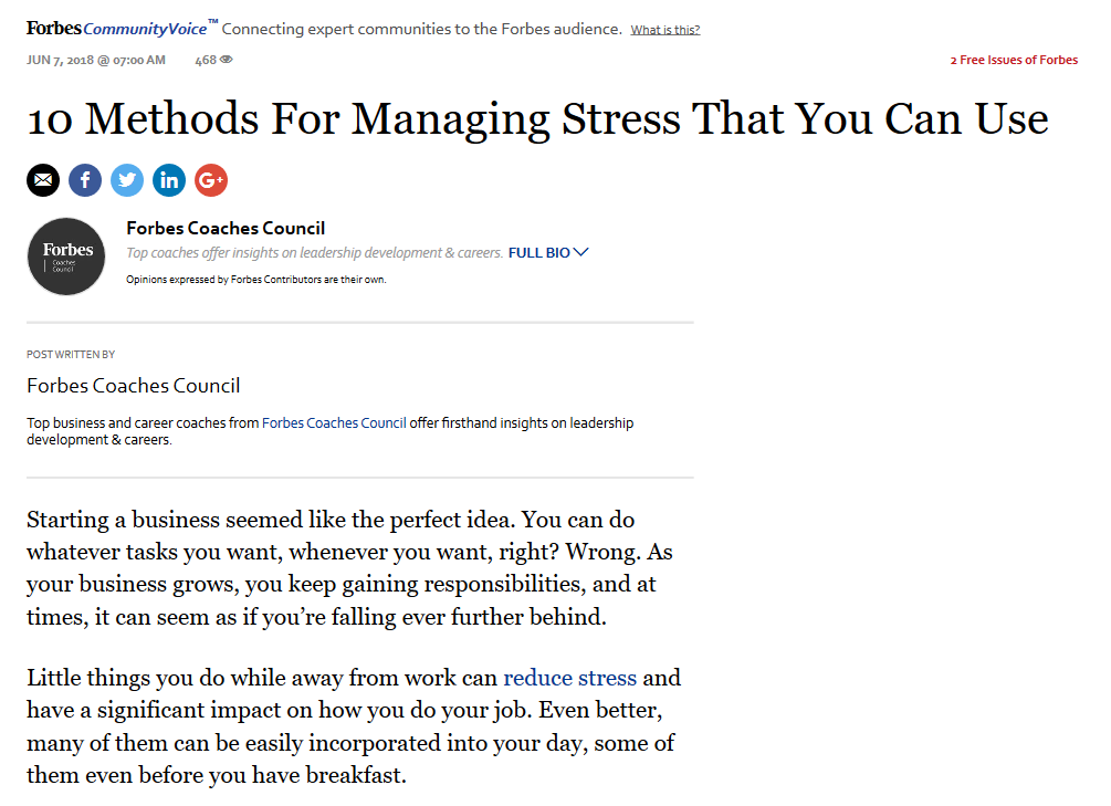 Karen Dee Provides Method for Managing Stress in Forbes Article